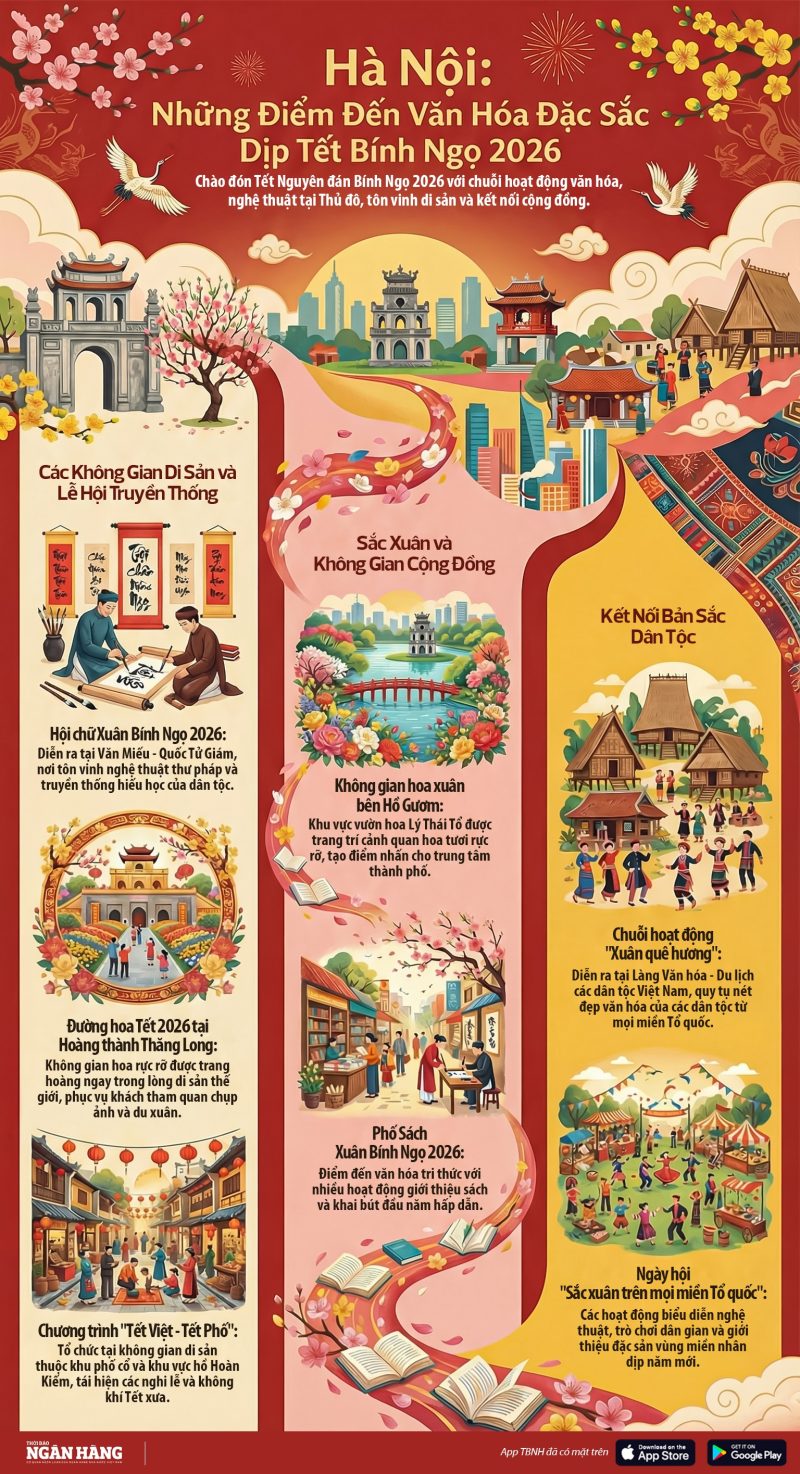 • Hà Nội: Nhiều điểm đến văn hóa dịp Tết Bính Ngọ 2026